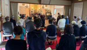 法要は虎ノ門・栄立院の福西上人と西調布・光岳寺の内田上人に出仕していただき3人でおつとめいたしました。この日は朝からワイヤレスマイクが全く機能しなくなってしまい、地声での回向となってしまいました。みなさんにしっかりと聞こえていたなら良いのですが……。
